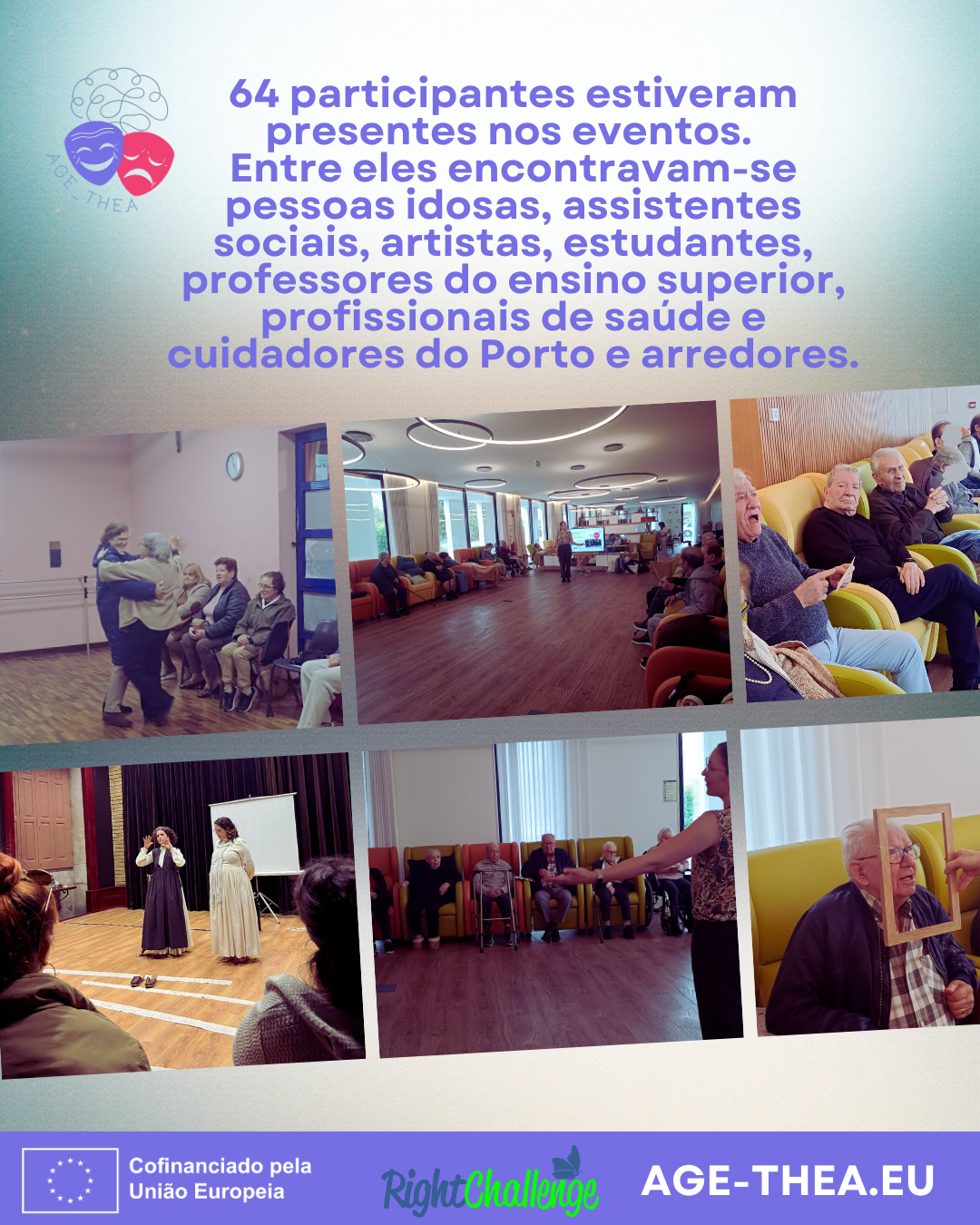 Nas últimas semanas em Portugal, a RightChallenge organizou vários eventos de sensibilização que reuniram séniores, cuidadores, profissionais da área social e artistas para explorar os resultados finais do projeto. Estes encontros tiveram lugar em: